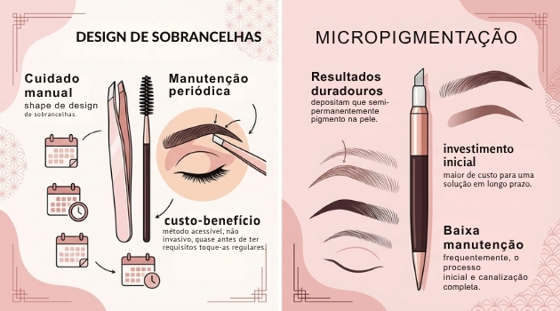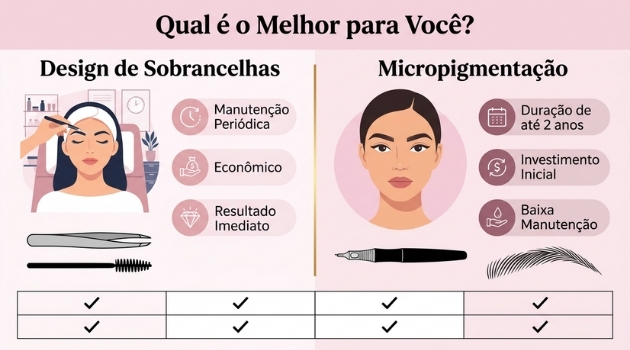 Se você quer praticidade máxima, micropigmentação ganha. Se não se importa com manutenção regular, design é suficiente.